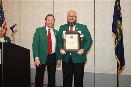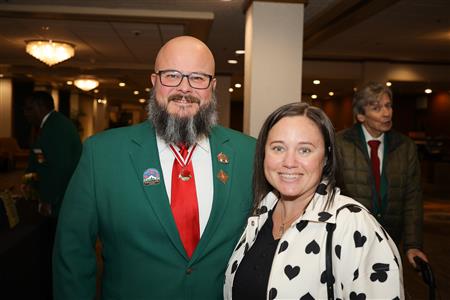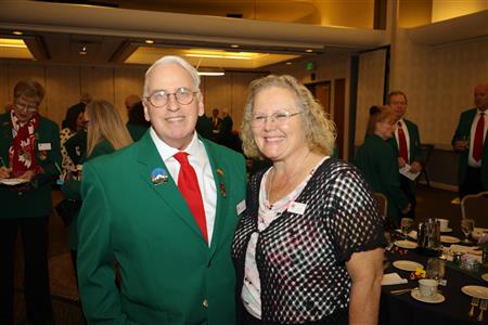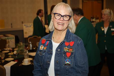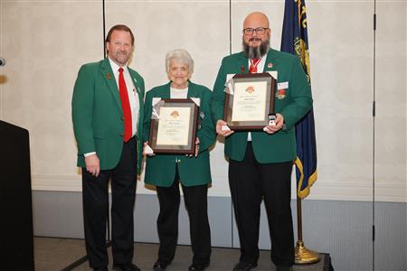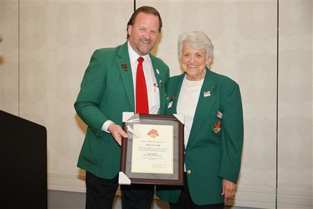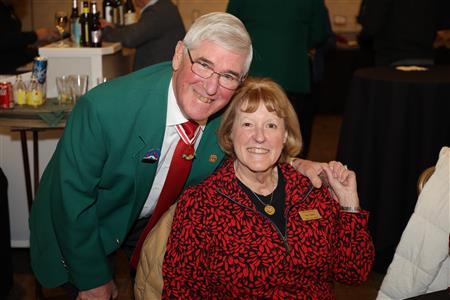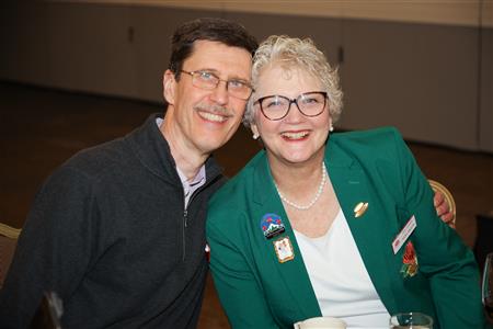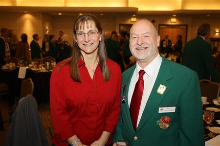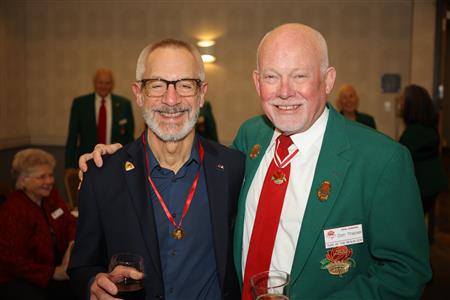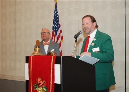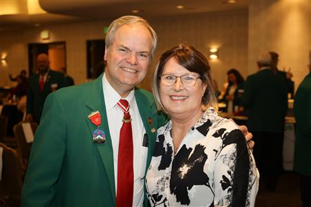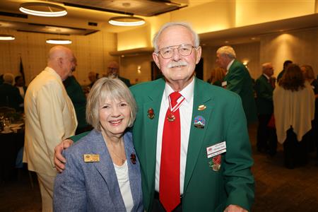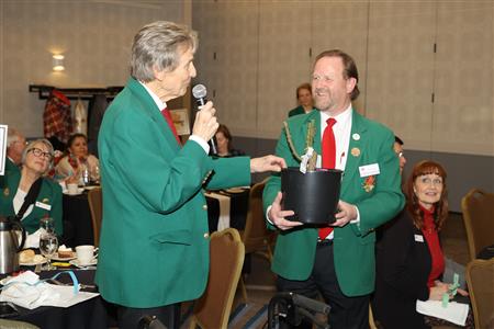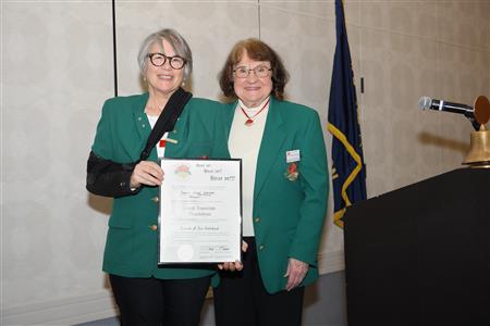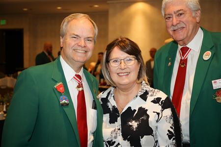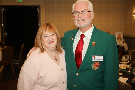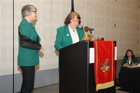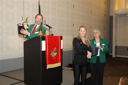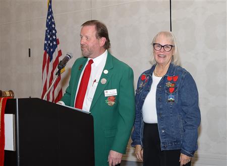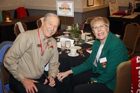 Lord High Chancellor Ron Fisher presiding for PM Amy Arasmith. New Life Members Dame Mary Correll and Duke Adam Baker receive their certificates & pins. Photos by Bill Barry